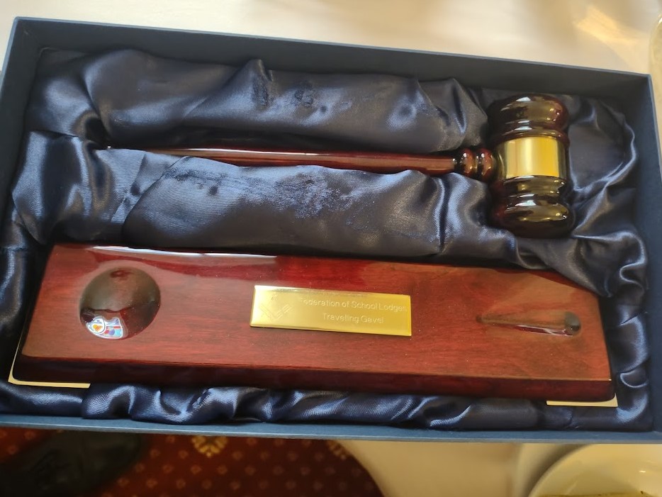 The Old Kimboltonians admitted they were always intending to surrender the gavel but wanted to test the robustness of the rules. Under the watchful eyes of The Chairman of the Federation, W. Bro. Michael Button (Taunton School Lodge No. 8215), and the Joint Secretary W. Bro. John Hubbard PSGD - (Old Brentwoods Lodge No 5342) the Old Kimboltonian’s WM W. Bro. Max Constant duly presented the Travelling Gavel to W. Bro Richard Thorne to the delight and applause of all present. |